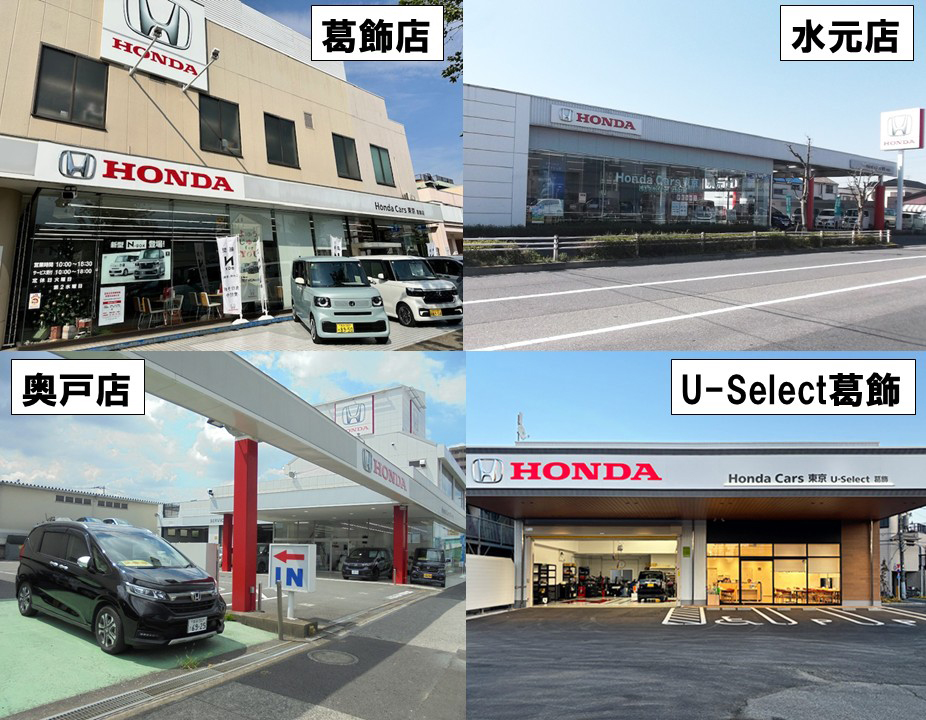 葛飾区においては葛飾店(四つ木5丁目)・水元店(南水元4丁目)・奥戸店(奥戸5丁目)の新車3店舗に加え、Honda認定中古車を取り扱うU-Select葛飾(立石5丁目)の計4店舗を展開しています。